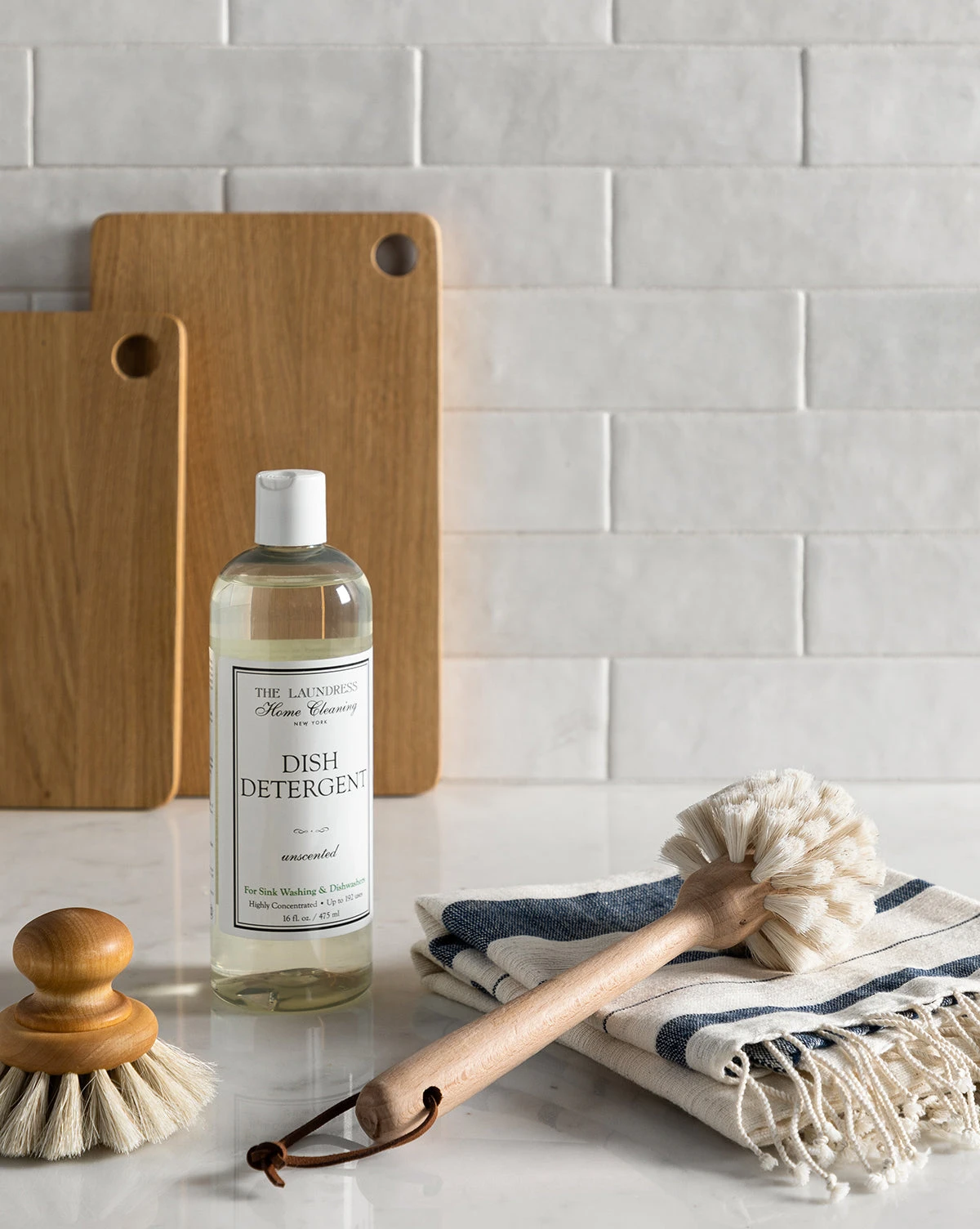 Crafted for both durability and aesthetic, the Beech Wood Dish Brush adds a natural detail to your kitchen sink. The round brush shape is ideally crafted for washing large pots or mugs, and its charming leather strap makes for easy organization.