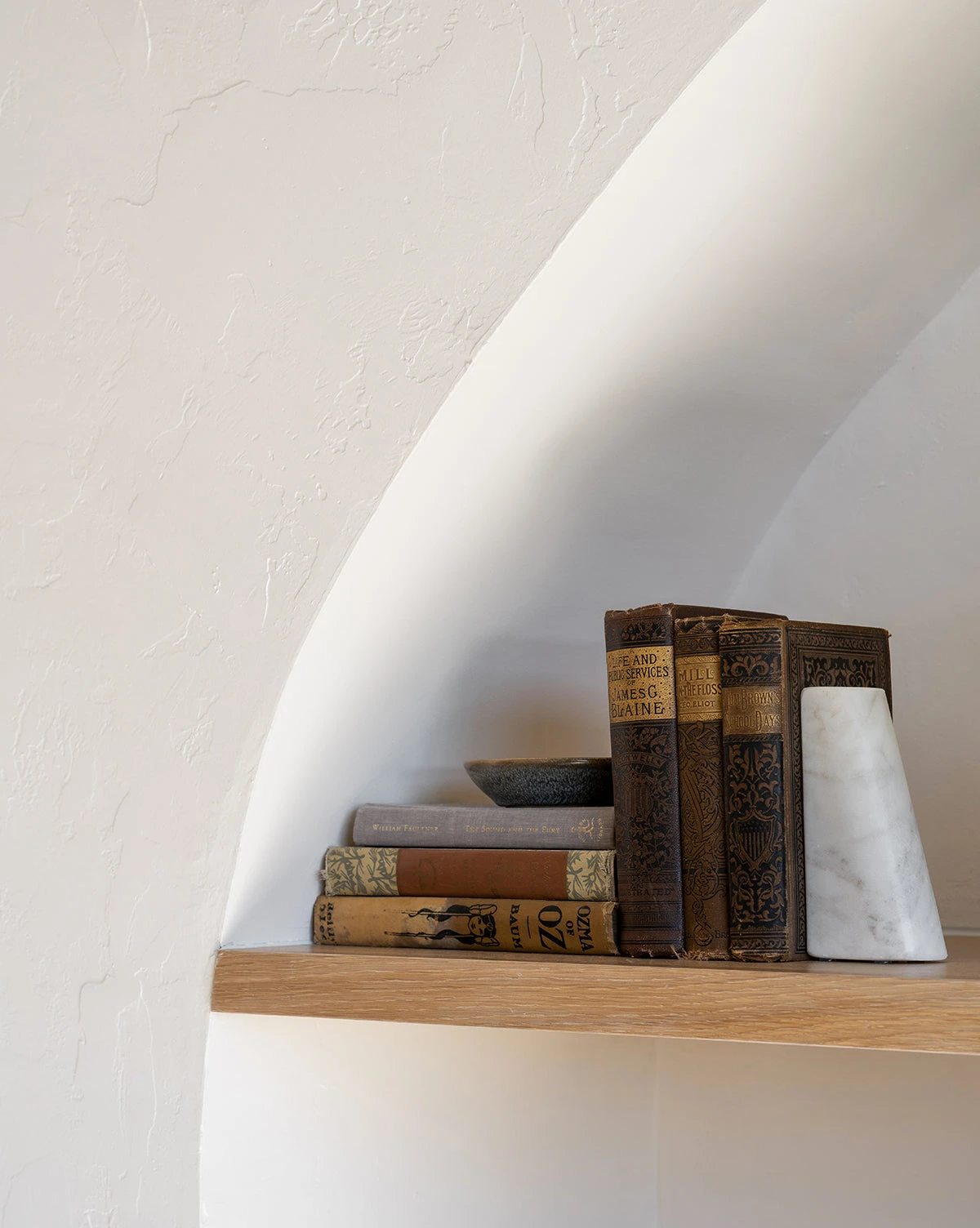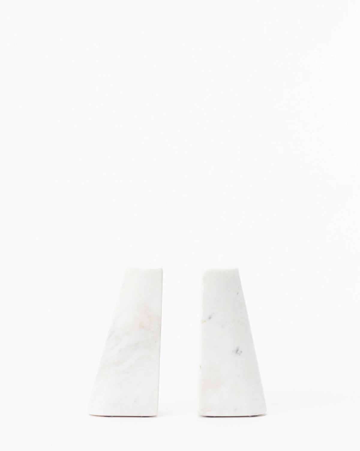 Solid white marble is tapered into a beautiful, elongated form in these Tapered Marble Bookends. The coloring and design are simple and straightforward, celebrating the marbling and subtle nuances of its natural material. Perfect for styling in built-ins or bookshelves, the Tapered Marble Bookends are a simple addition that elevates the look of the entire space.