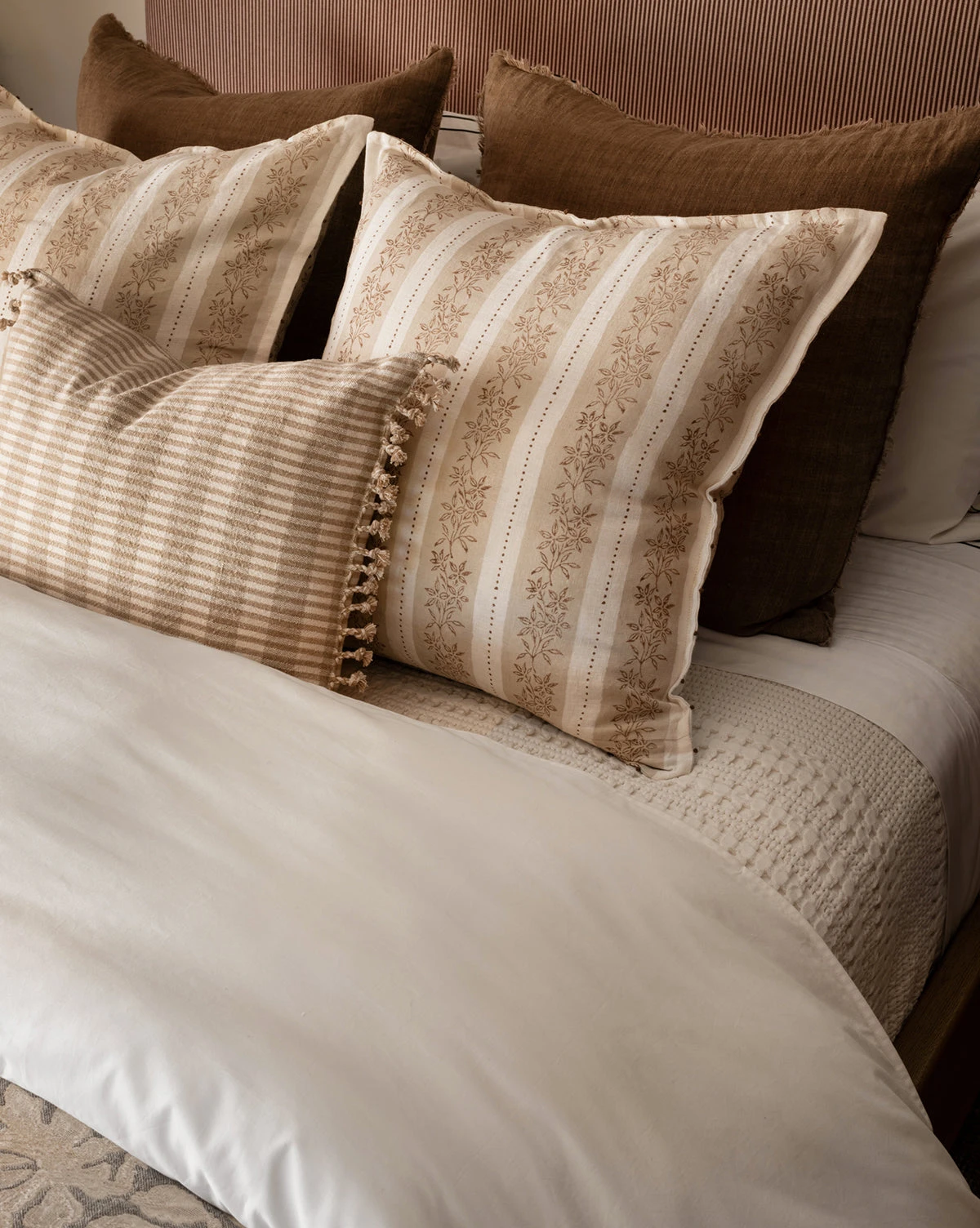 With a supple waffle weave, the Carnel Waffle Blanket is made by master weavers in Portugal with 100% cotton. Neutral and inviting, the waffle weave blanket’s white color allows for seamless layering with other textiles.