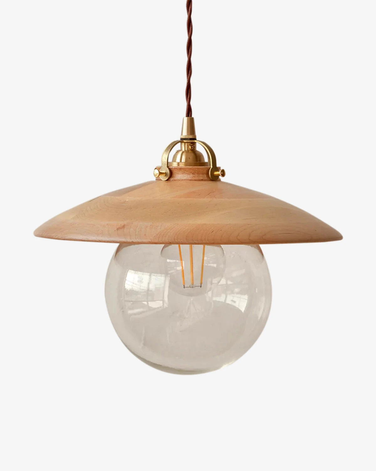 The Edmund Pendant is an unexpected twist on the ordinary with handcrafted quality. Its handmade wooden shade frames a slightly oversized bulb for a play on scale and an eclectic mix of style.