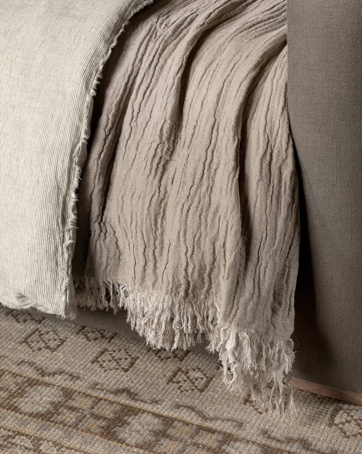 Intricately crafted, the Ernessa Oversized Throw brings a layer of texture and warmth to everything from sofas to bedding. This soft-to-the-touch throw is double weaved from a cotton and bamboo blend for a double-sided textile with a unique design on both front and back. Its naturally crinkling fabric adds an element of texture, giving a casual yet elevated feel to your styling.