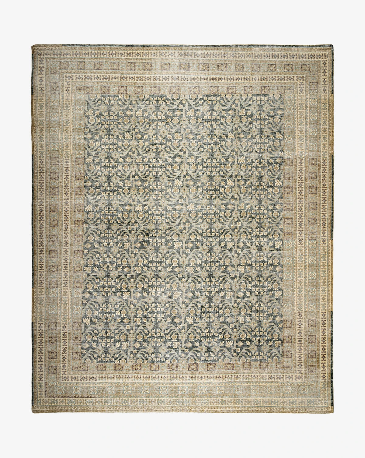 With a vintage feel that boasts intricate details, the Evangeline Hand-Knotted Wool Rug adds the calming feel of green, tan and black tones to your space. Soft underfoot and hand-knotted from 100% wool, the rug is both durable and elegant in a design that grounds the room.