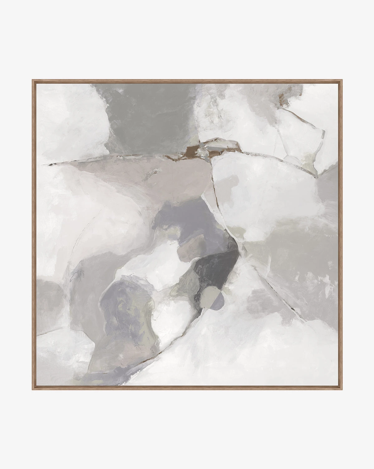 With a dramatic composition, Fractured I takes inspiration from nature, using a calming cool and neutral palette. Framed within natural wood, the piece elevates your decor with its details and museum-quality materials.