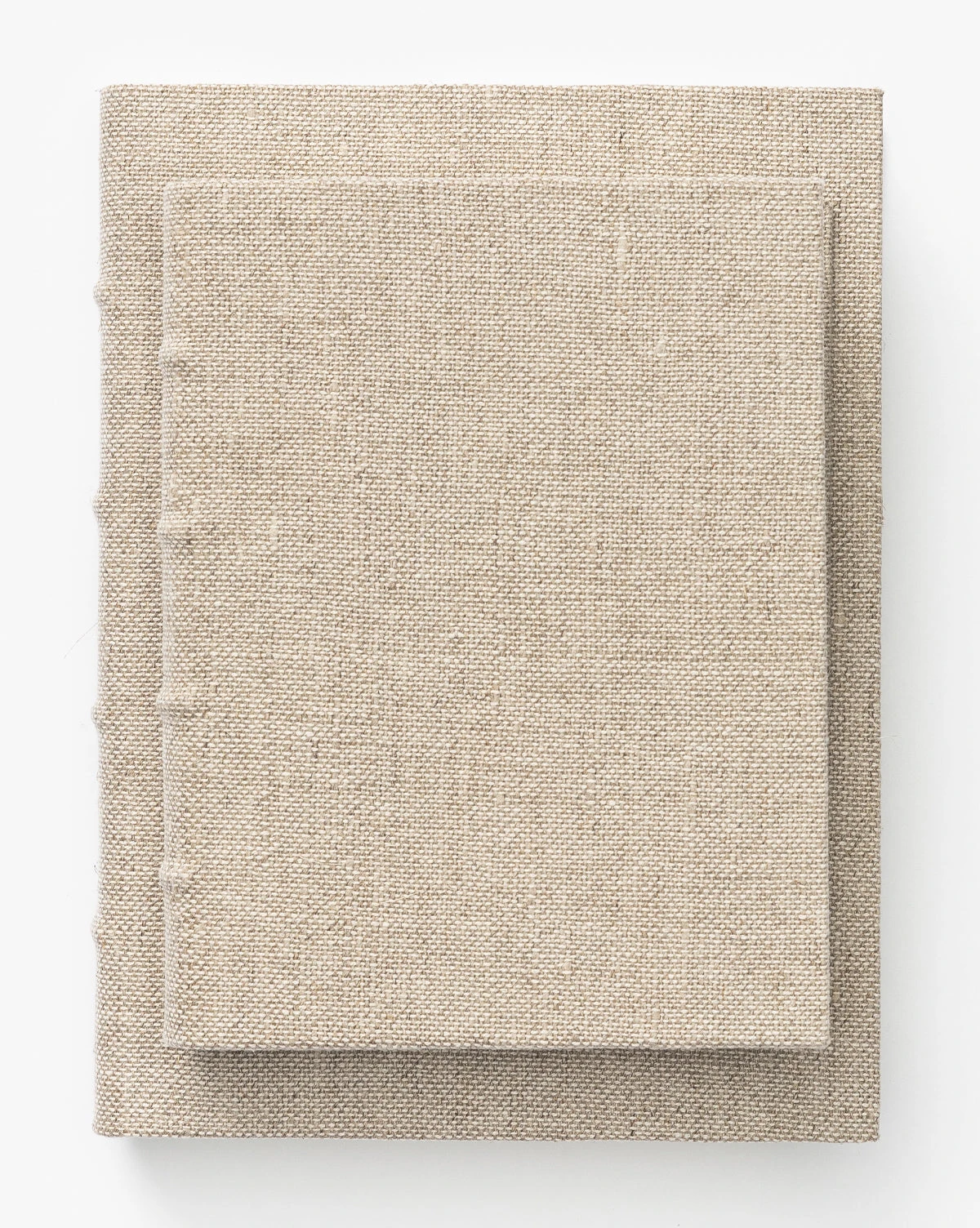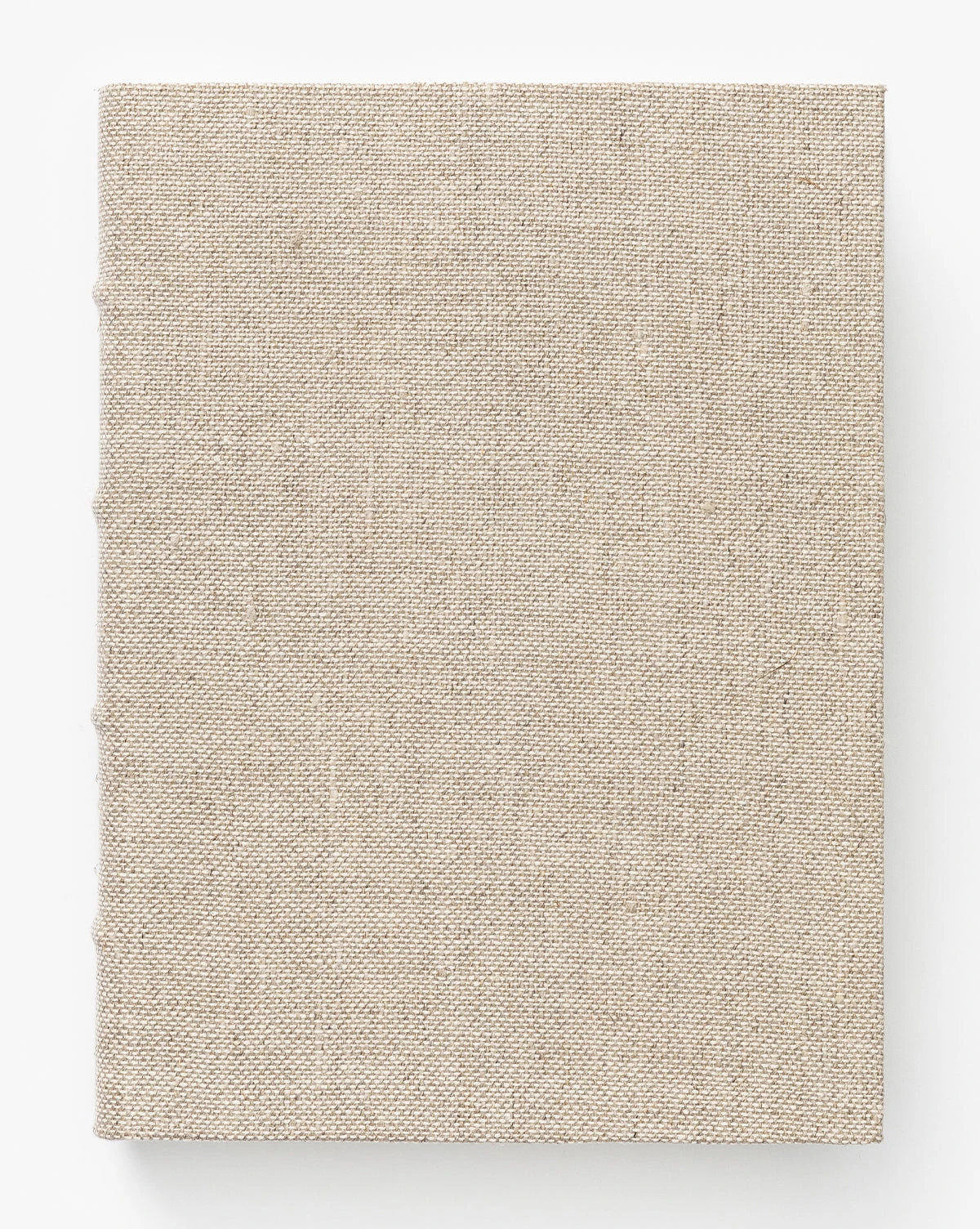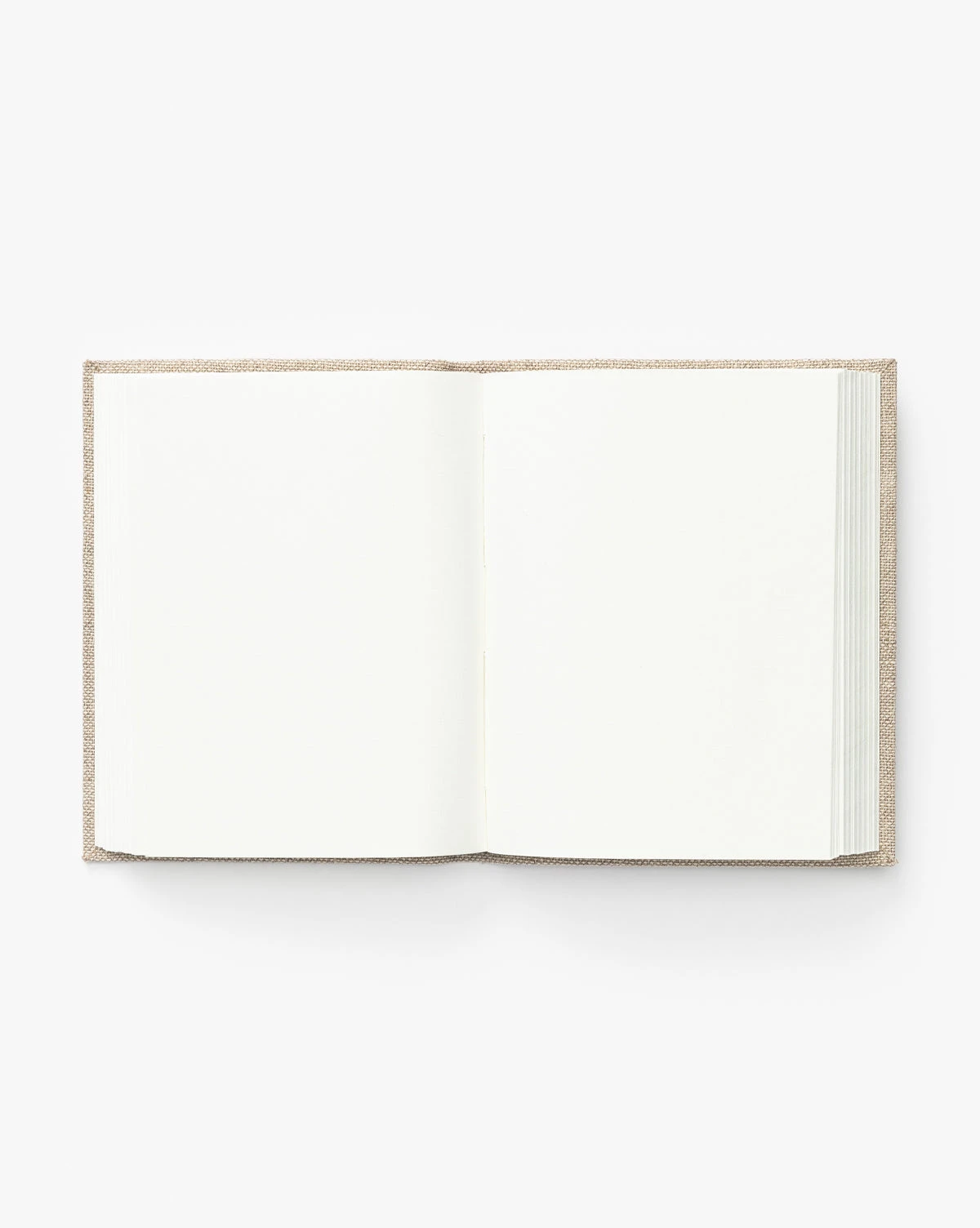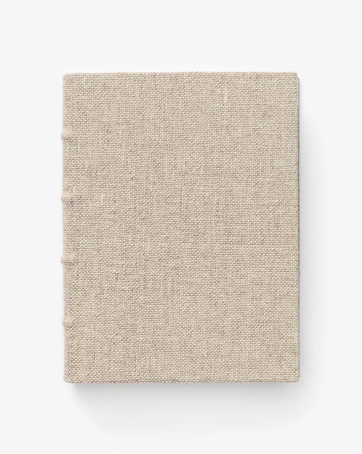 With linen fabric and handmade paper, the Handcrafted Linen Book fills out your styling with an academic, sophisticated look. Its traditional binding holds its white two-toned linen fabric, giving a warm touch of texture wherever it is styled.