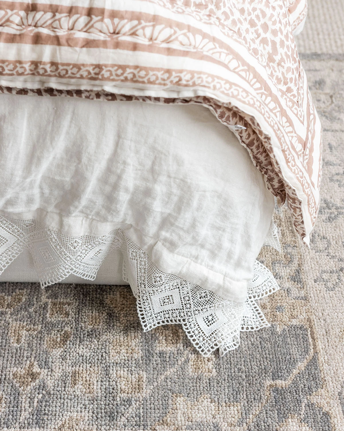 Crafted from 100% wool and hand-knotted by skilled artisans, our Latvia Hand-Knotted Wool Rug is timeless, durable, and soft––anchoring your space with transitional style to last throughout the years. Its neutral tones and feminine provide a soothing aesthetic, as a textural fringed edge finishes off the design.