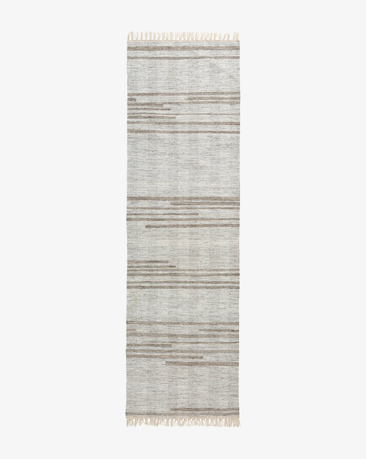 With a simple palette, the Lochlyn Handwoven Wool Rug holds a remarkable level of detail from its careful construction. Handwoven using a manual broadloom, the yarn creates a subtly intricate pattern within the block stripes. The rug lends durable style to any room with its New Zealand wool blend.