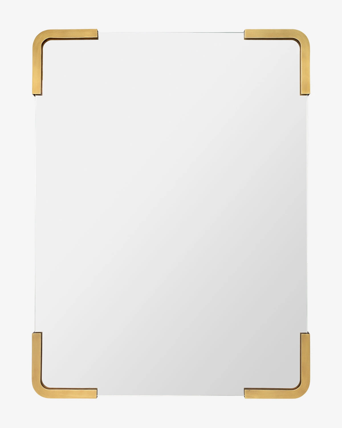 Frameless and bold, the Mare Mirror has subtle, rounded corners with antique brass accents. Its modern design is simple while making a statement, creating a center of focus in your home.