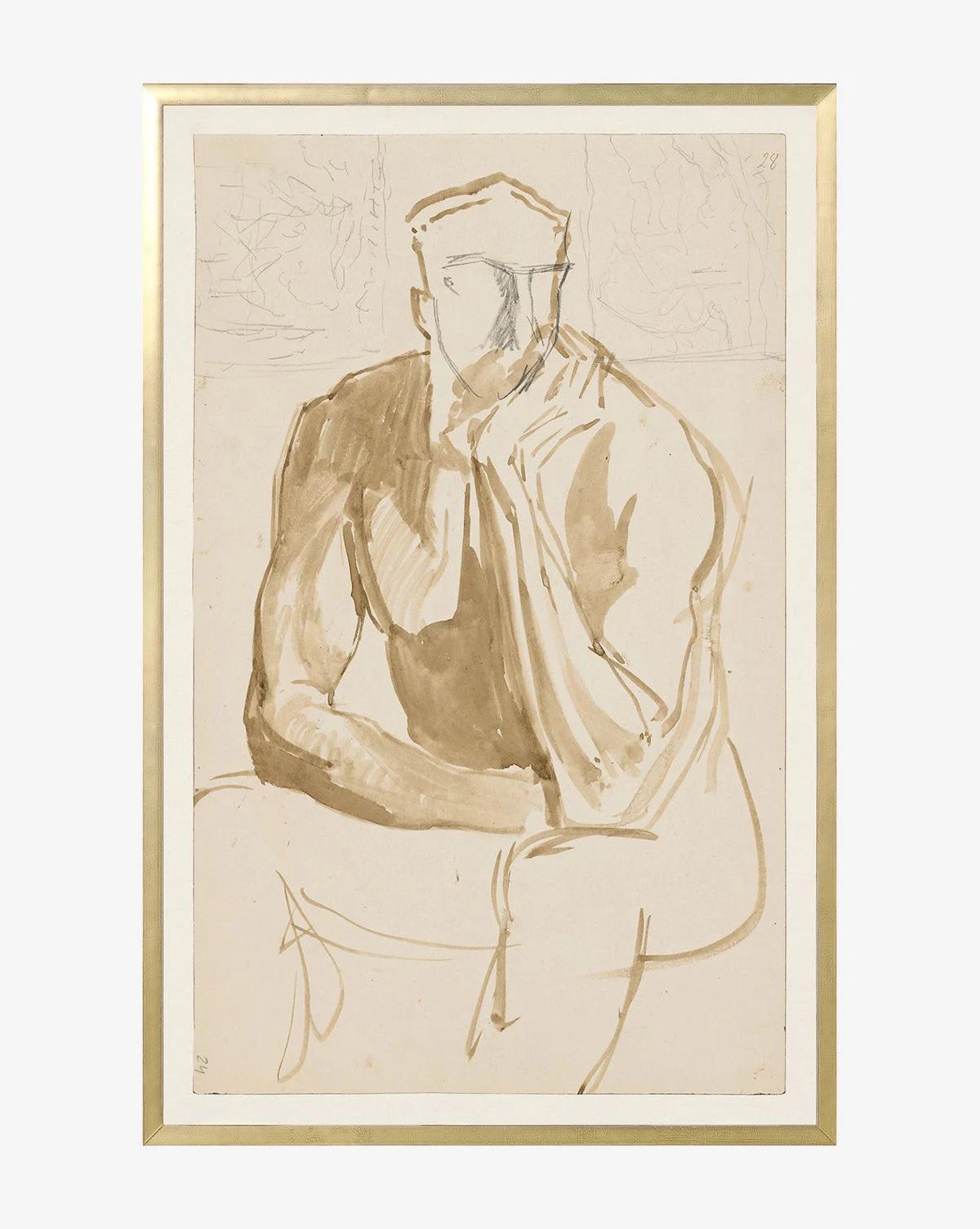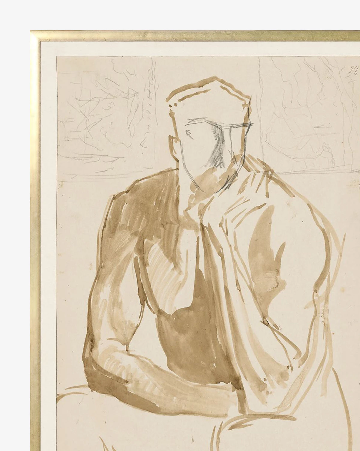 Representing a 1897 sketch by Ladislav Mednyanszky, Reflection is creative and bold, with warm abstracted details. With a sense of life and masterful artistry, the piece is framed with black and antique gold wood with clear glass.