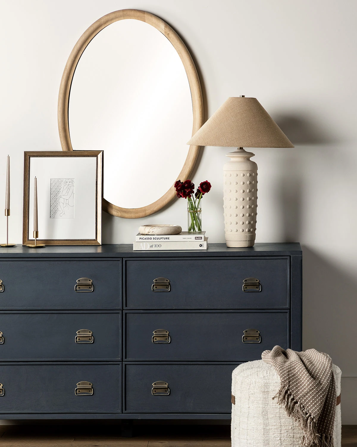 With softly rounded edges and a frame of natural oak, the Reta Oval Wood Mirror has a gentle yet pronounced presence that gives any space a touch of light and dimension. Its rounded edges and neutral finish emphasize its romantic feel, effortlessly creating a subdued statement in the home.