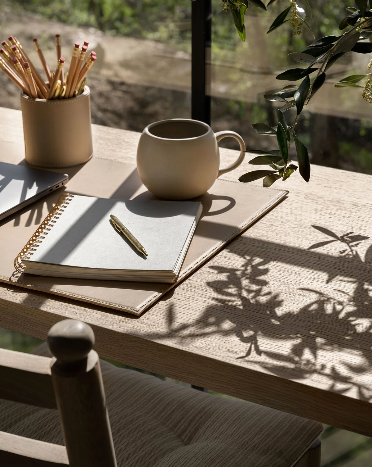 Made with high-quality leather in a nude hue, the Rupert Leather Desk Blotter is a timeless home office essential. Bringing cohesion to your desk whether styled alone or with other Rupert home office styles, the desk blotter lends its subtle yet sophisticated quality to your space.