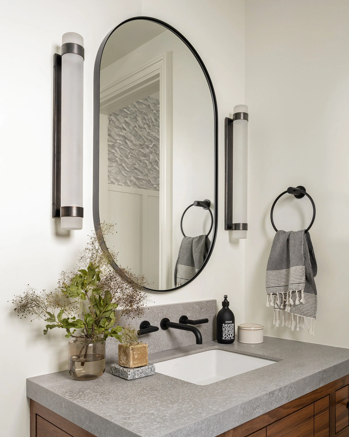 Hand welded and polished with stainless steel; our Rye mirror brings a modern and streamlined element to any room. Finished in black nickel, it’s unique shape is as striking as it is minimal.