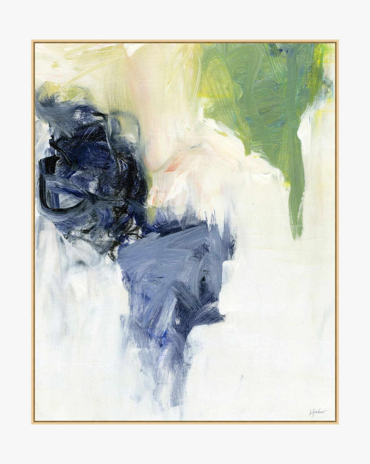 In an emotive composition, Selcouth is presented on gallery-wrapped canvas within a natural wood floater frame. Exploring color and texture, the piece by M. Pia de Girolamo brings beauty and intrigue wherever it is styled.