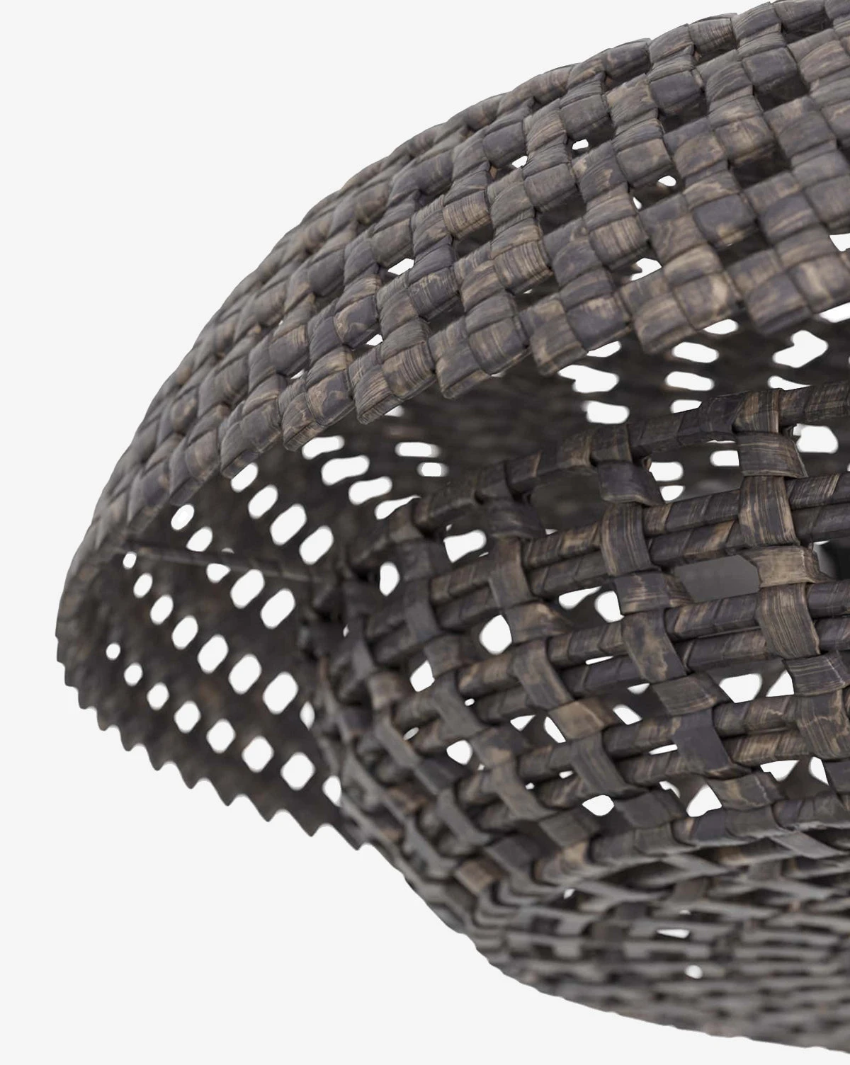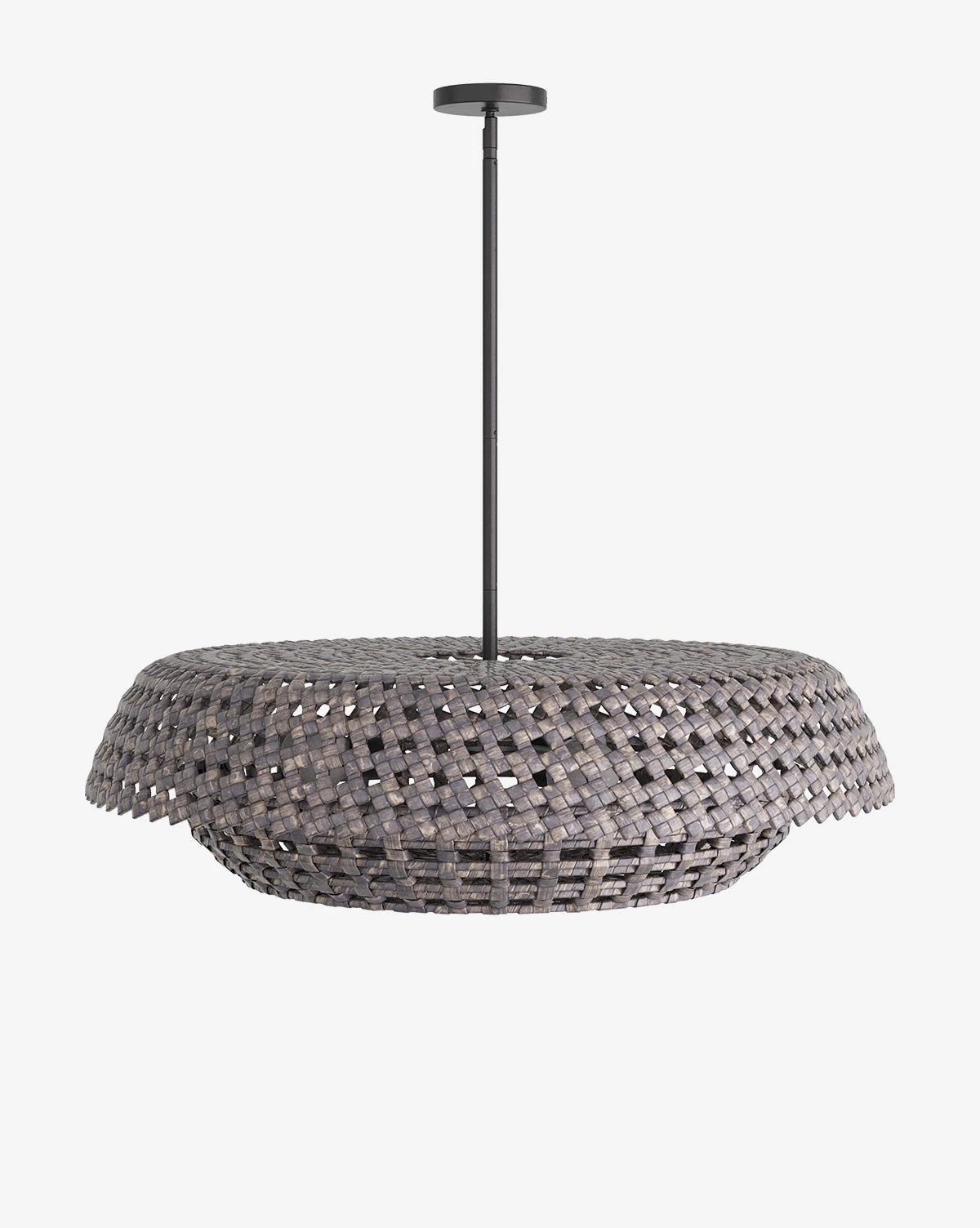 In a streamlined yet organic shape, the Valdez Pendant is woven from dark gray washed raffia. Seamlessly blending modern shapes with textural materials, this pendant brings an organic, airy tone everywhere from kitchens to dining rooms.