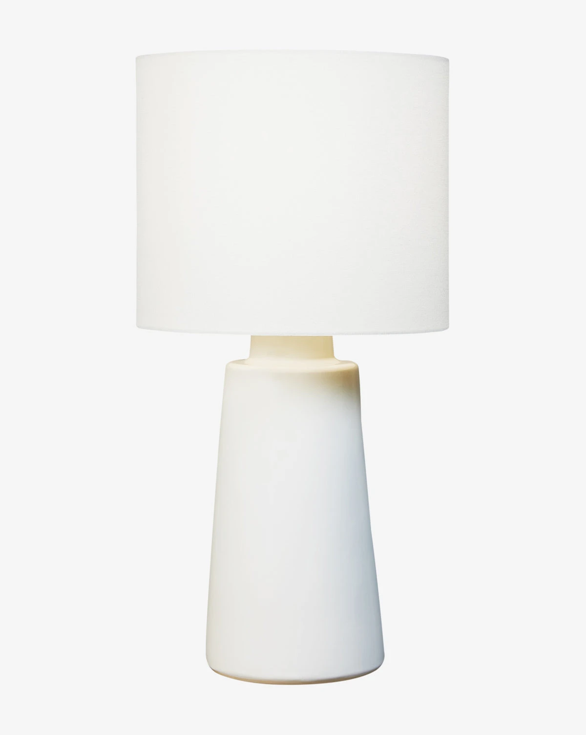 Bold and sculptural, the Vessel Table Lamp is made from ceramic in your choice of an intentionally colorful glazed finish. Its artisan shape adds dimension to the simple white linen shade and lends a welcoming, decorative moment to your vignettes.